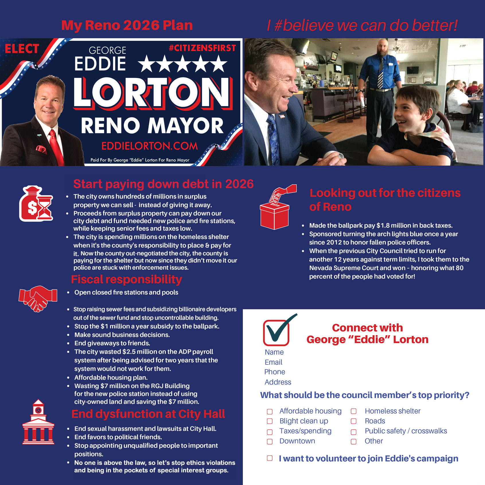 I fight for citizens, not for special interest groups or friends. I’d love for my reputation to earn your vote for Reno Mayor. Thank you for watching. If this video speaks to you, please forward it along to your friends.